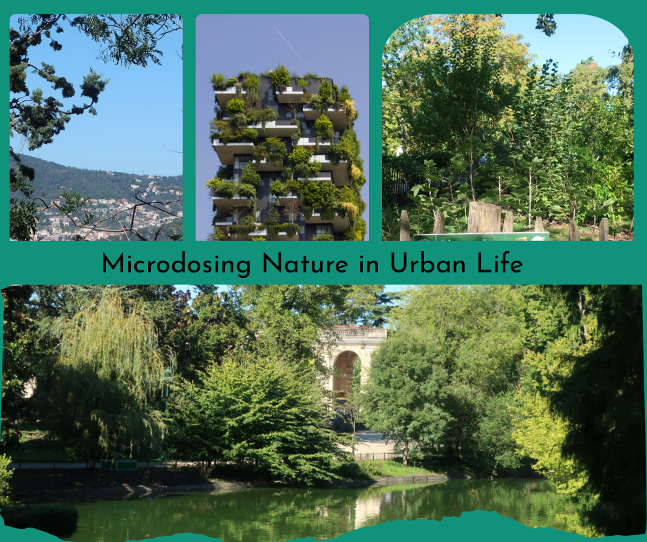 Microdosing nature — brief, repeatable moments with green, sky, or birdsong that restore balance without leaving the city.